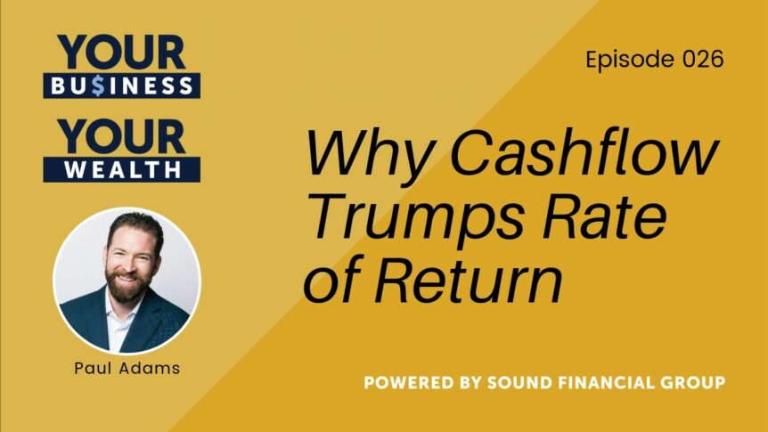 Welcome to the video version of Sound Financial Bites this week. It’s great to have you all. We decided to do a video version of this Sound Financial Bites simply because, we’re going to go on something a little more complex than usual. It’s going to require some bit of analytical horsepower on your part, and we’re going to use visual to make all of it much easier. My name is Paul Adams, I’m president and CEO of Sound Financial Group, and what we’re going to talk about today is the idea that cash flow trumps rate of return. You know, more of our other podcast, a guest of mine, Krisstina Wise, talked about the way you build wealth is with your spending, not with your investing.