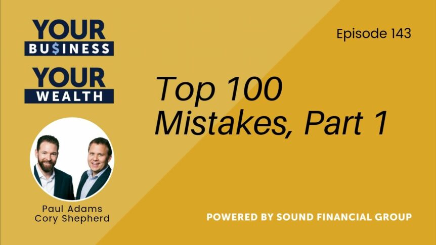 In this episode of Your Business, Your Wealth, Paul and Cory break down the top one hundred mistakes to avoid to help get your finances in order. Breaking this down into four segments, the first twenty-five mistakes cover a variety of topics from the importance of building an emergency fund to how much money to invest in a 401(k). They talk about financial strategies, investing and taking ownership of your financial well-being. Finally, Cory and Paul identify common misconceptions about finance in order to provide a roadmap to a healthy financial future.